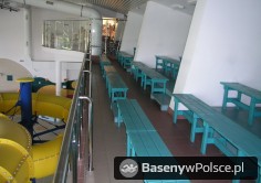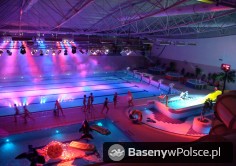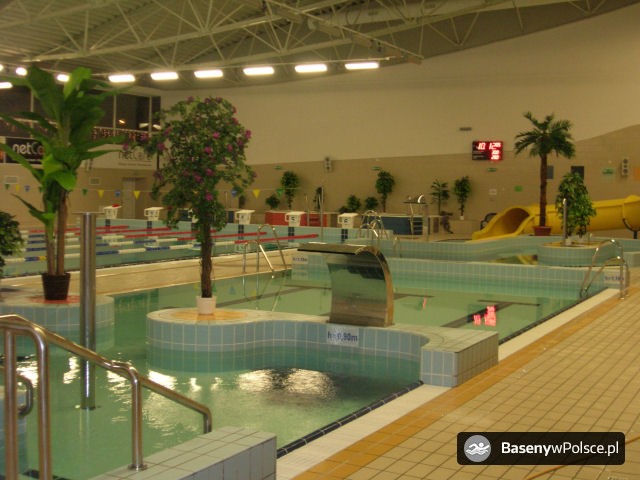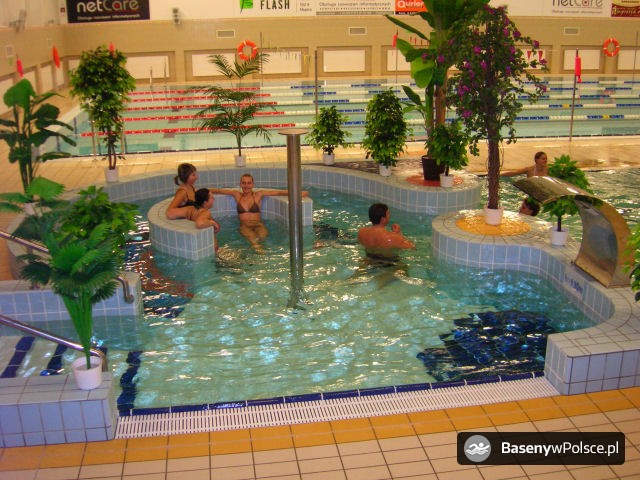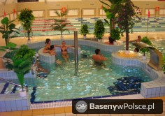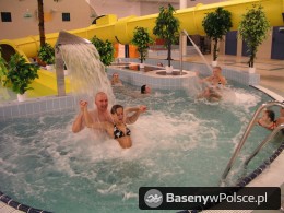 masaże wodne w kilku miejscach w środku i na zewnątrz niecek basenowych